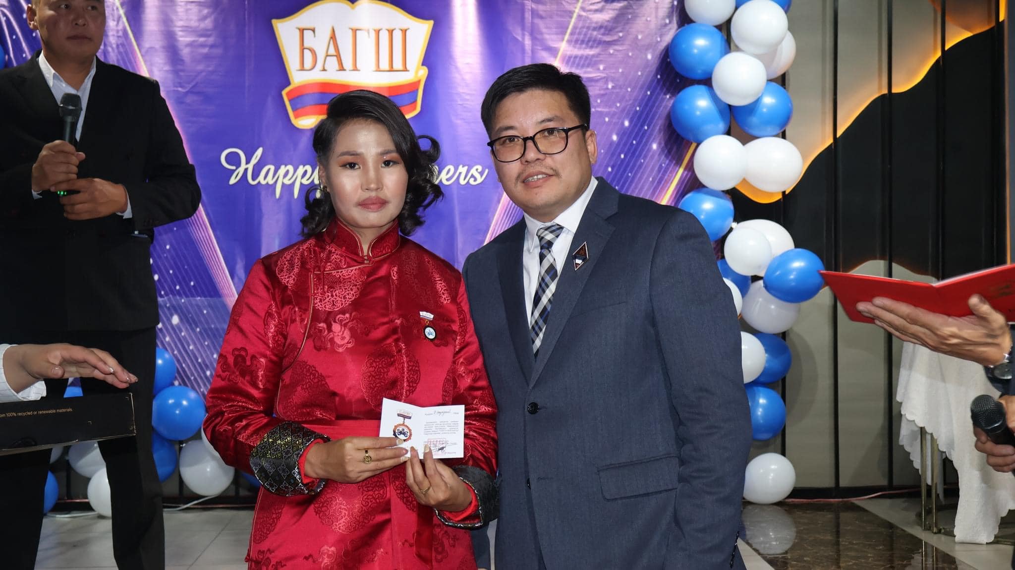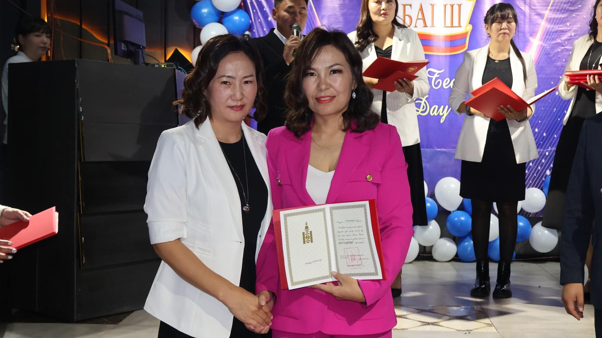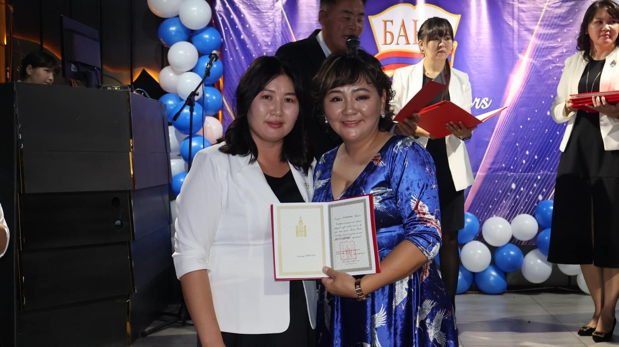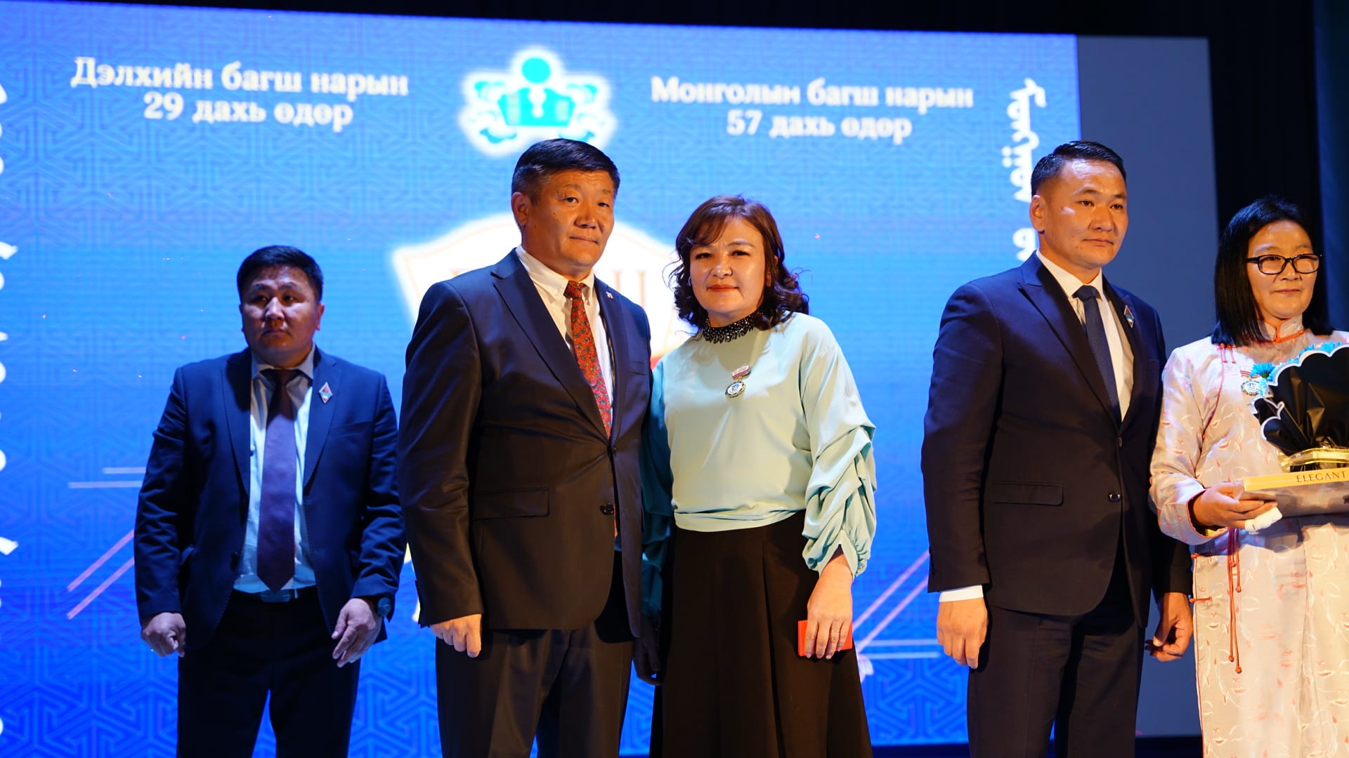 Засгийн газрын шагнал “Боловсролын тэргүүний ажилтан” цол тэмдгээр математикийн багш Э.Ариунтуяа, бага ангийн багш А.Ганчимэг
