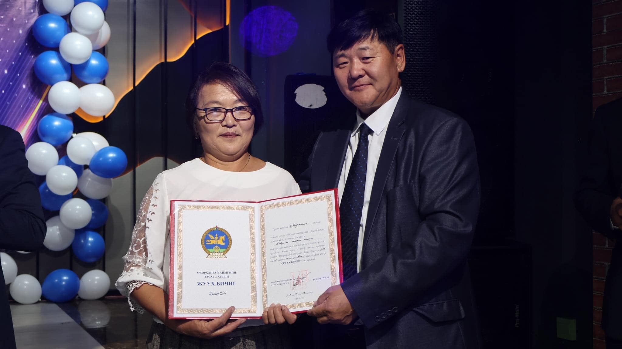 Аймгийн ИТХ-н “Хүндэт жуух бичиг”-ээр технологийн багш С.Хатанбаатар, жижүүр Д.Мягмарсүрэн
