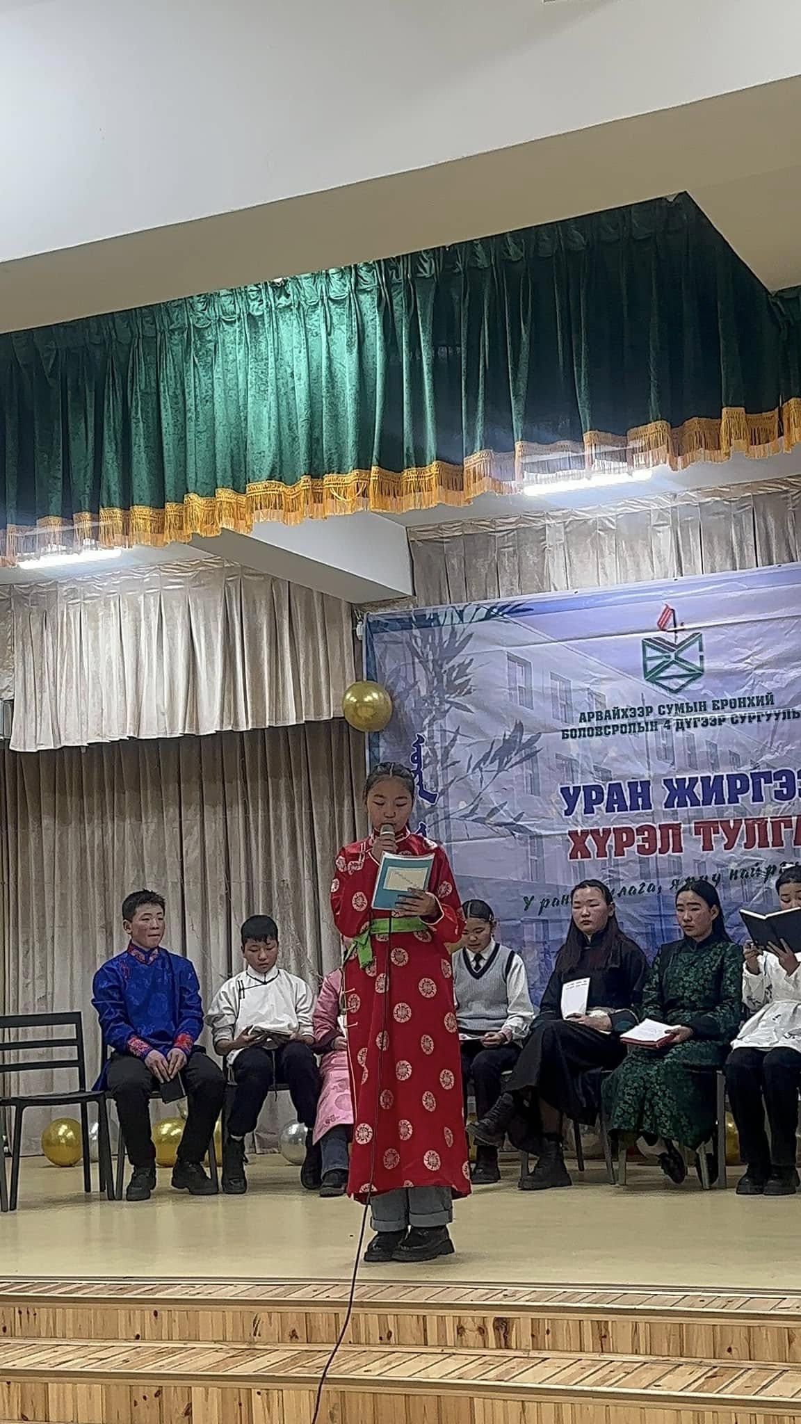 Сурагчдыг эх хэлний арвин баялаг үгийн ид шидээр аялуулан, үг хэллэгийн гайхамшигт ертөнцөөс суралцуулж, шүлэг яруу найрагт дурлуулж, чөлөөт сэтгэлгээ, гоо зүйн мэдрэмжийг хөгжүүлэх, зохион найруулах чадварыг хөгжүүлэх зорилгоор “УРАН ЖИРГЭЭ, ХҮРЭЛ ТУЛГА-2025”наадмыг 2-12-р ангийн сурагчдын дунд зохион байгууллаа.